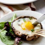 Bake at 350F for about 20-30 minutes or until the mushrooms are cooked. While they bake, make your eggs.