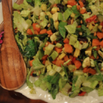 Once the veggies are roasted, mix into the salad bowl and toss with the dressing.