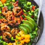 In a bowl combine salad mix, brown rice, sweet potatoes, bell peppers, and shrimp, mix and add any extra sauce from pan.