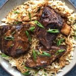 Serve over brown rice, garnishing with the sliced scallion greens.